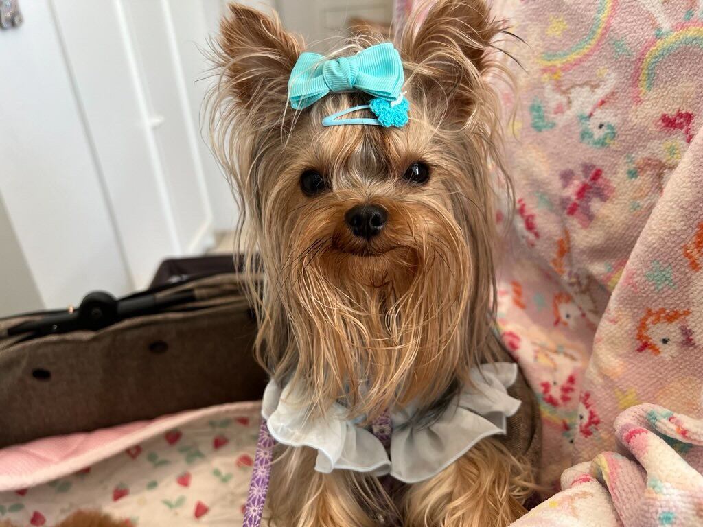 ☆「スタンド」→リボンを目立たせたい方、頭頂部の毛量が少なくリボンをつけるといつもリボンが寝てしまうワンちゃん。