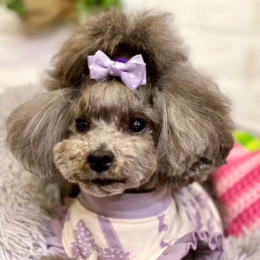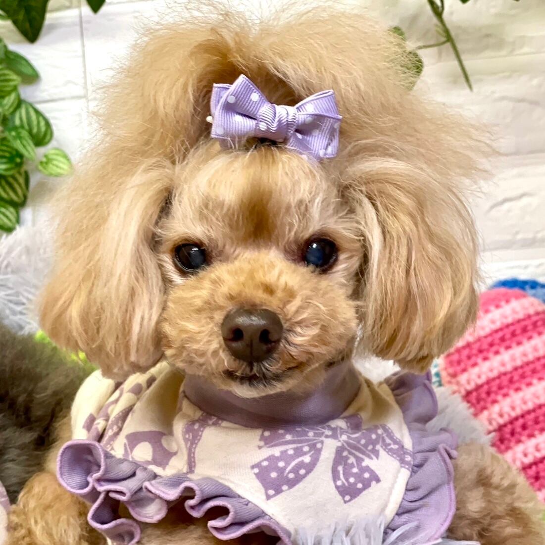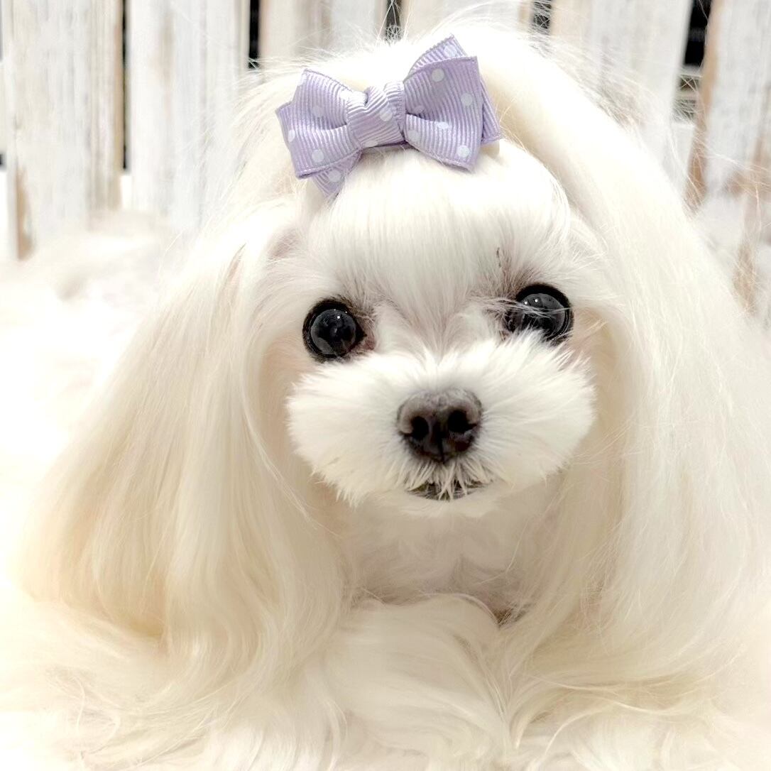 ☆「スタンド」→リボンを目立たせたい方、頭頂部の毛量が少なくリボンをつけるといつもリボンが寝てしまうワンちゃん。