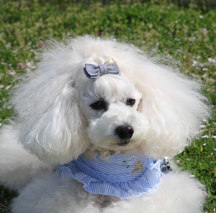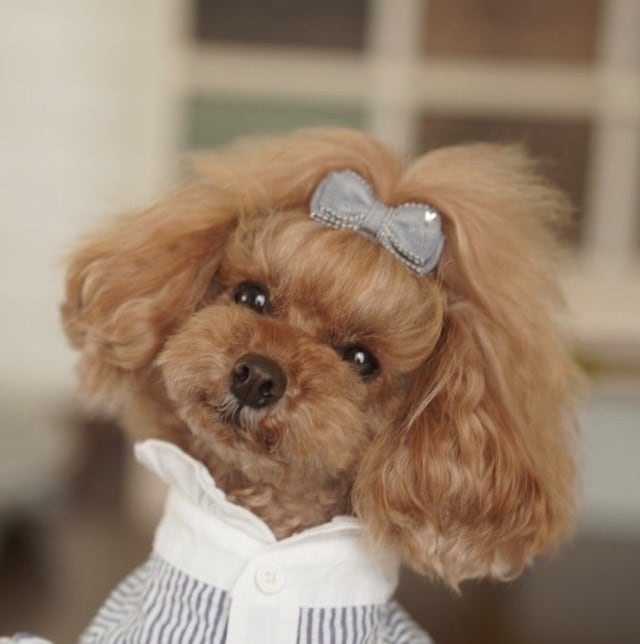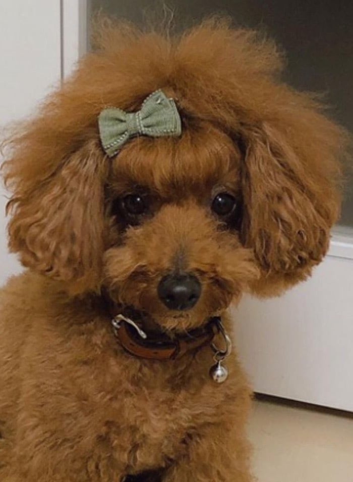 ☆「スタンド」→リボンを目立たせたい方、頭頂部の毛量が少なくリボンをつけるといつもリボンが寝てしまうワンちゃん。