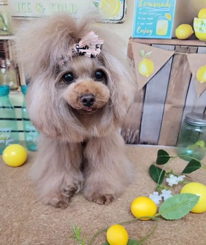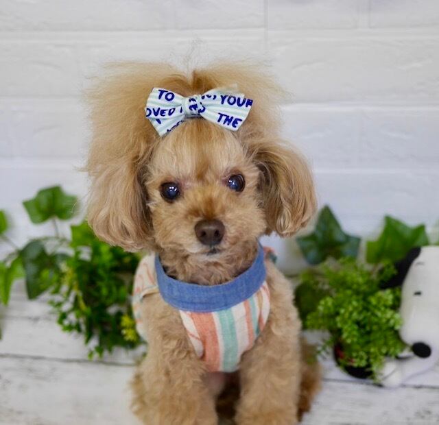 ☆「スタンド」→リボンを目立たせたい方、頭頂部の毛量が少なくリボンをつけるといつもリボンが寝てしまうワンちゃん。