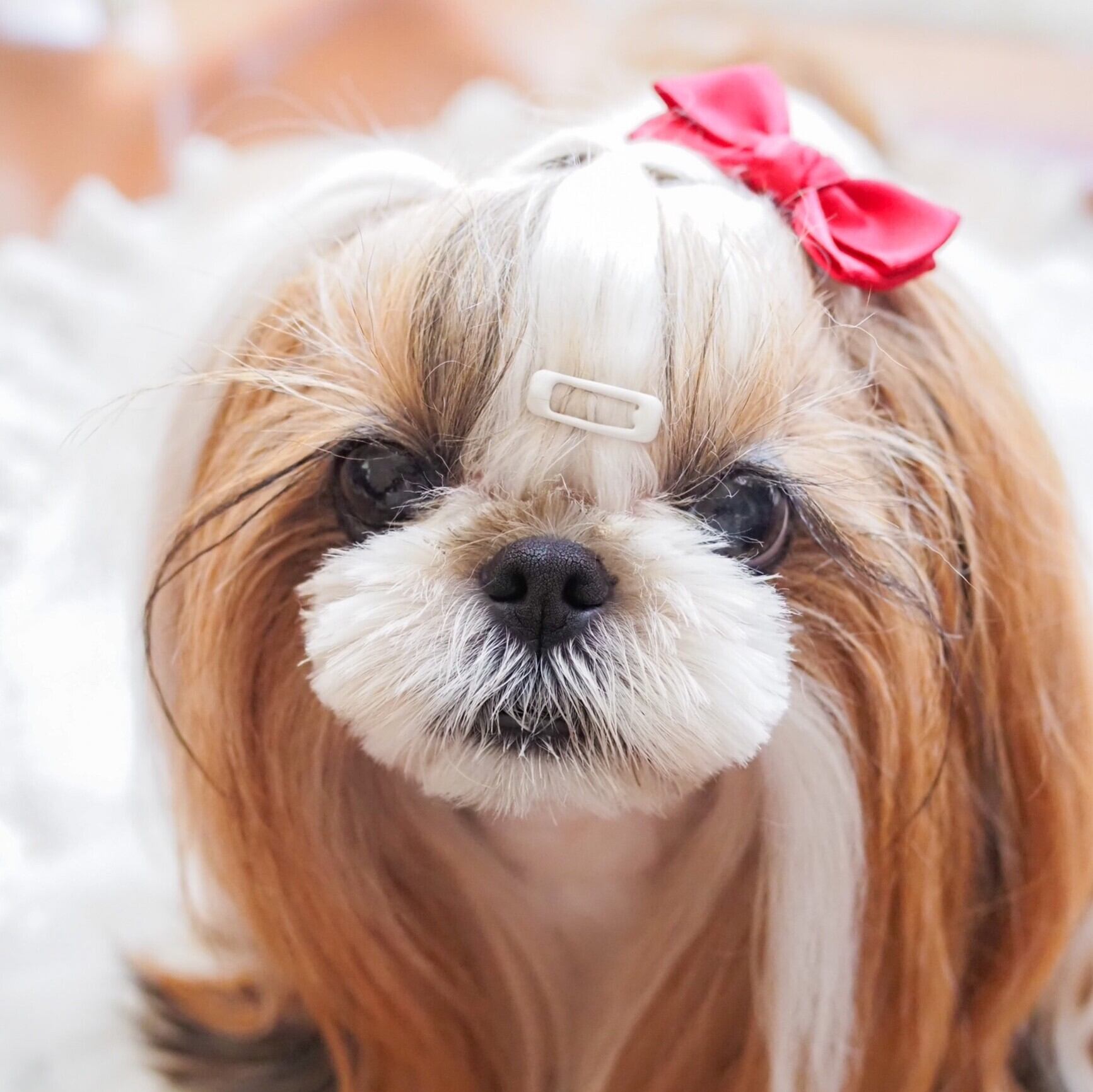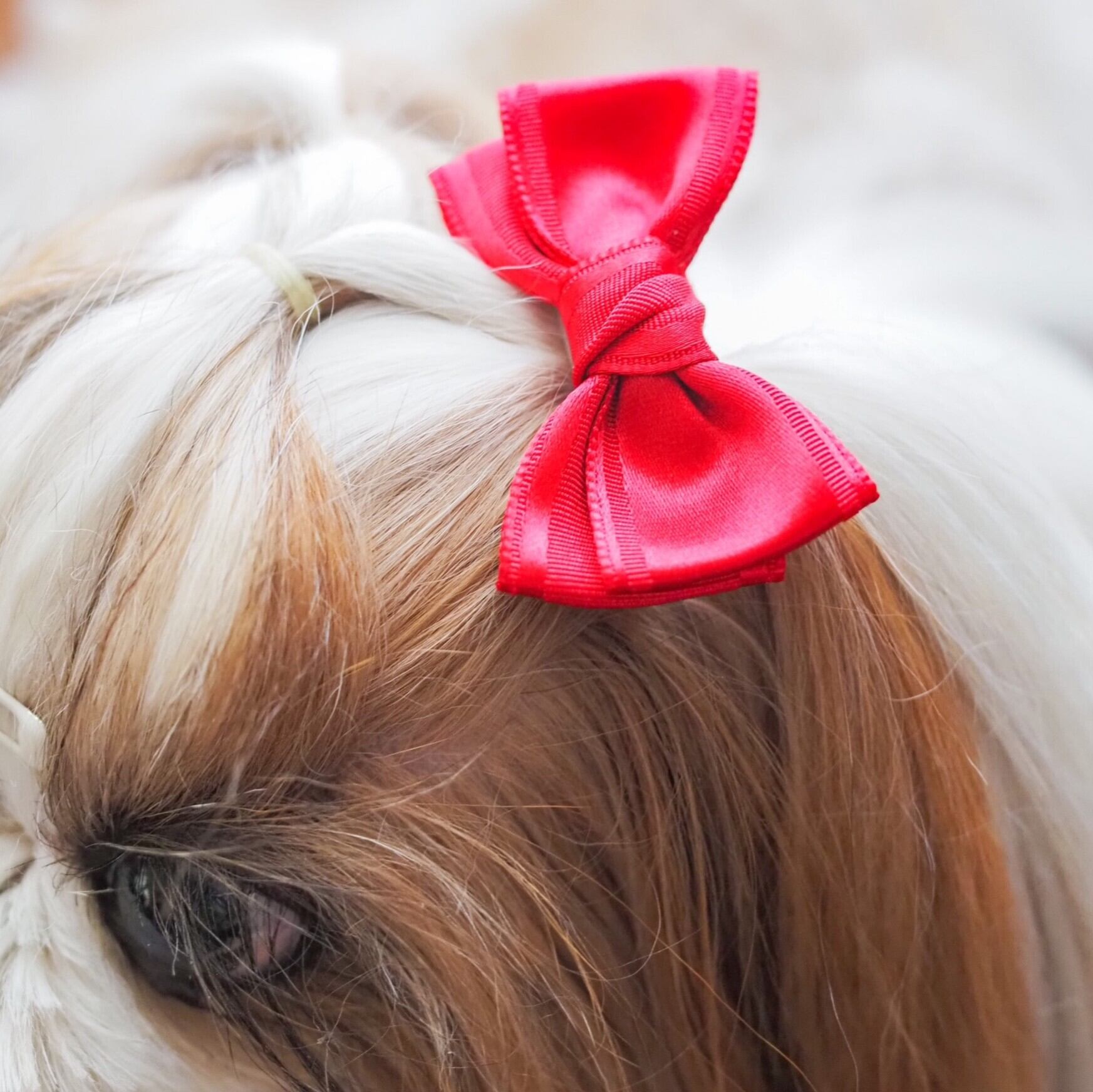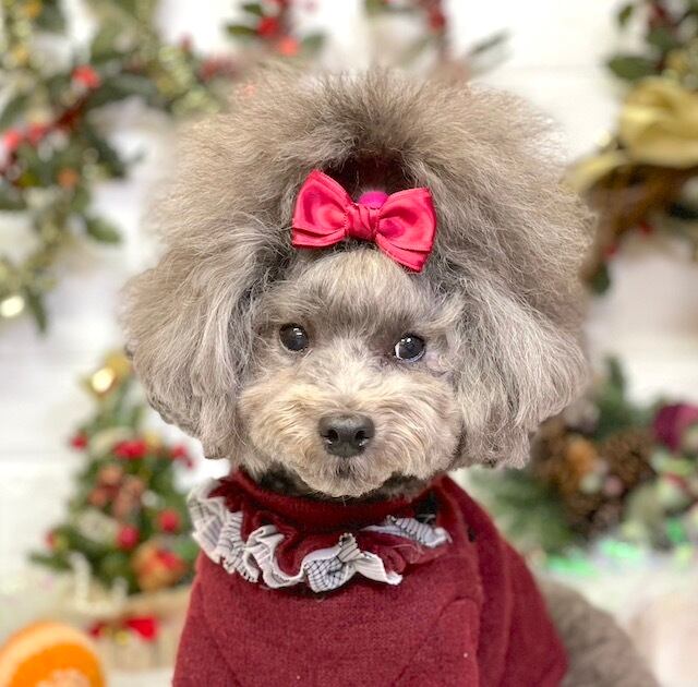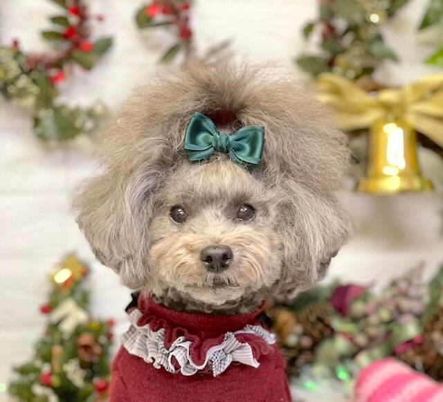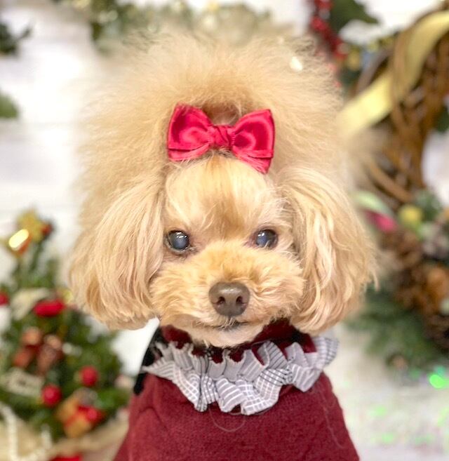 ☆「スタンド」→リボンを目立たせたい方、頭頂部の毛量が少なくリボンをつけるといつもリボンが寝てしまうワンちゃん。