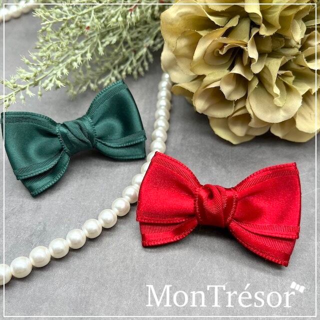 クリスマスカラーのグリーンとレッドの光沢サテンリボン♡