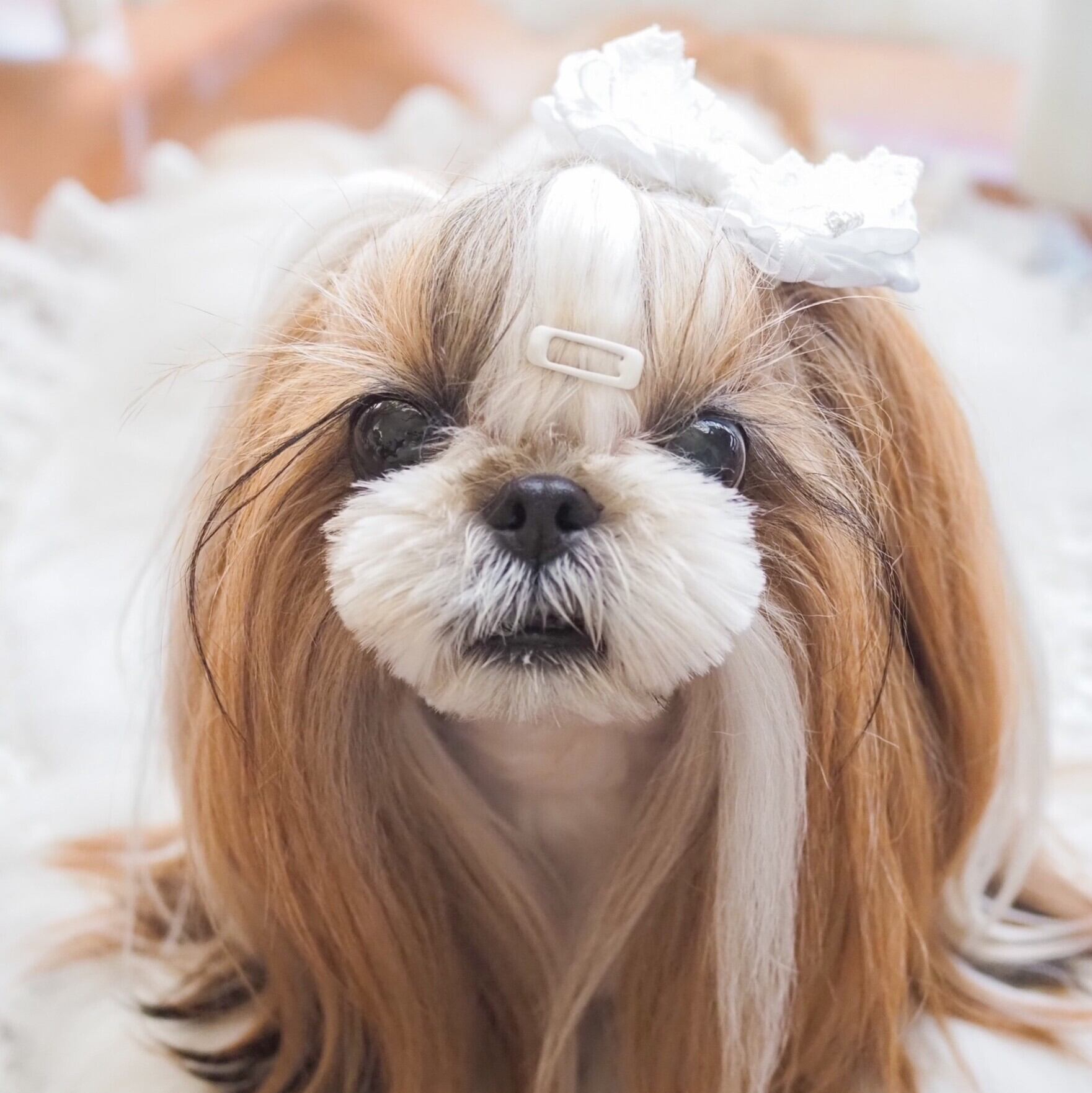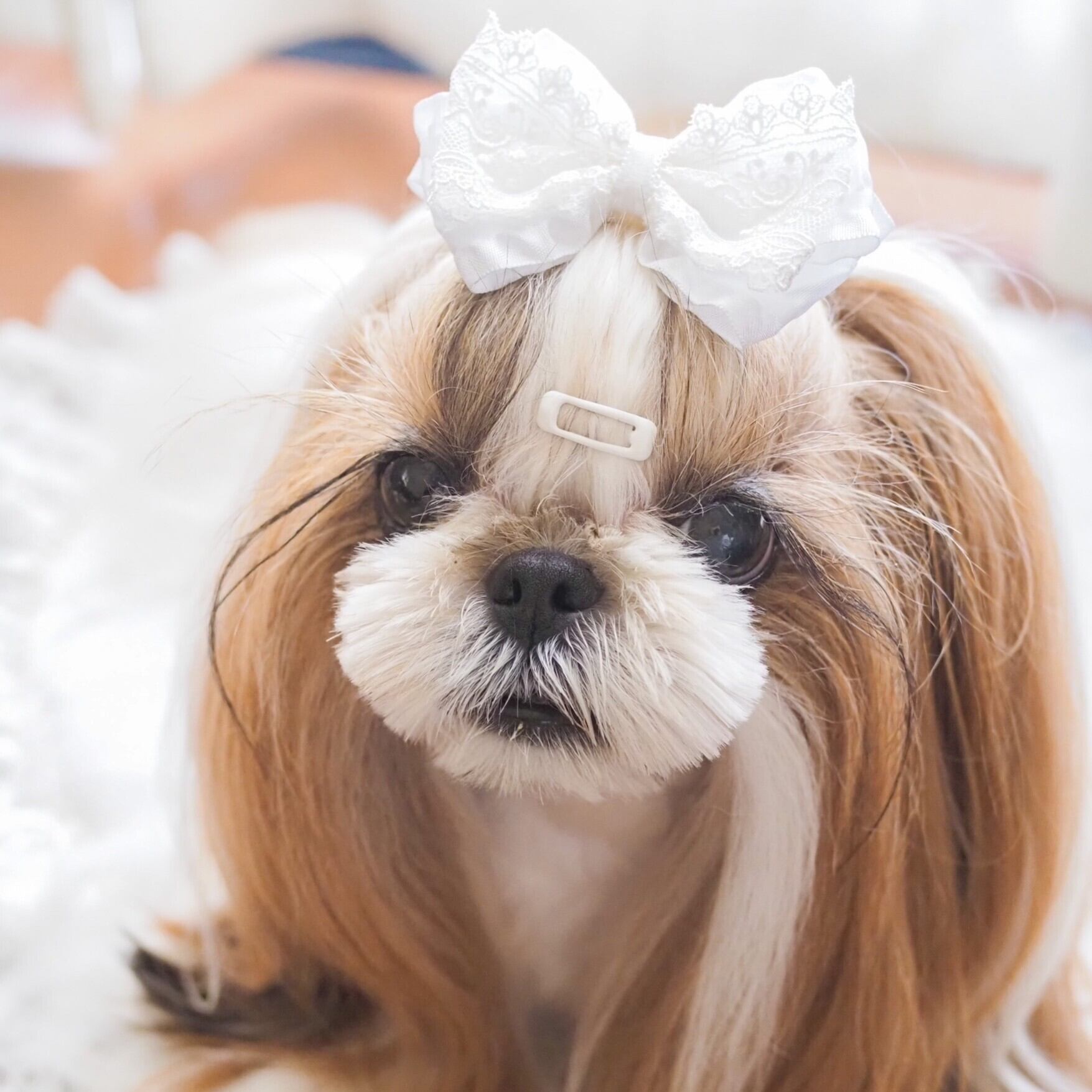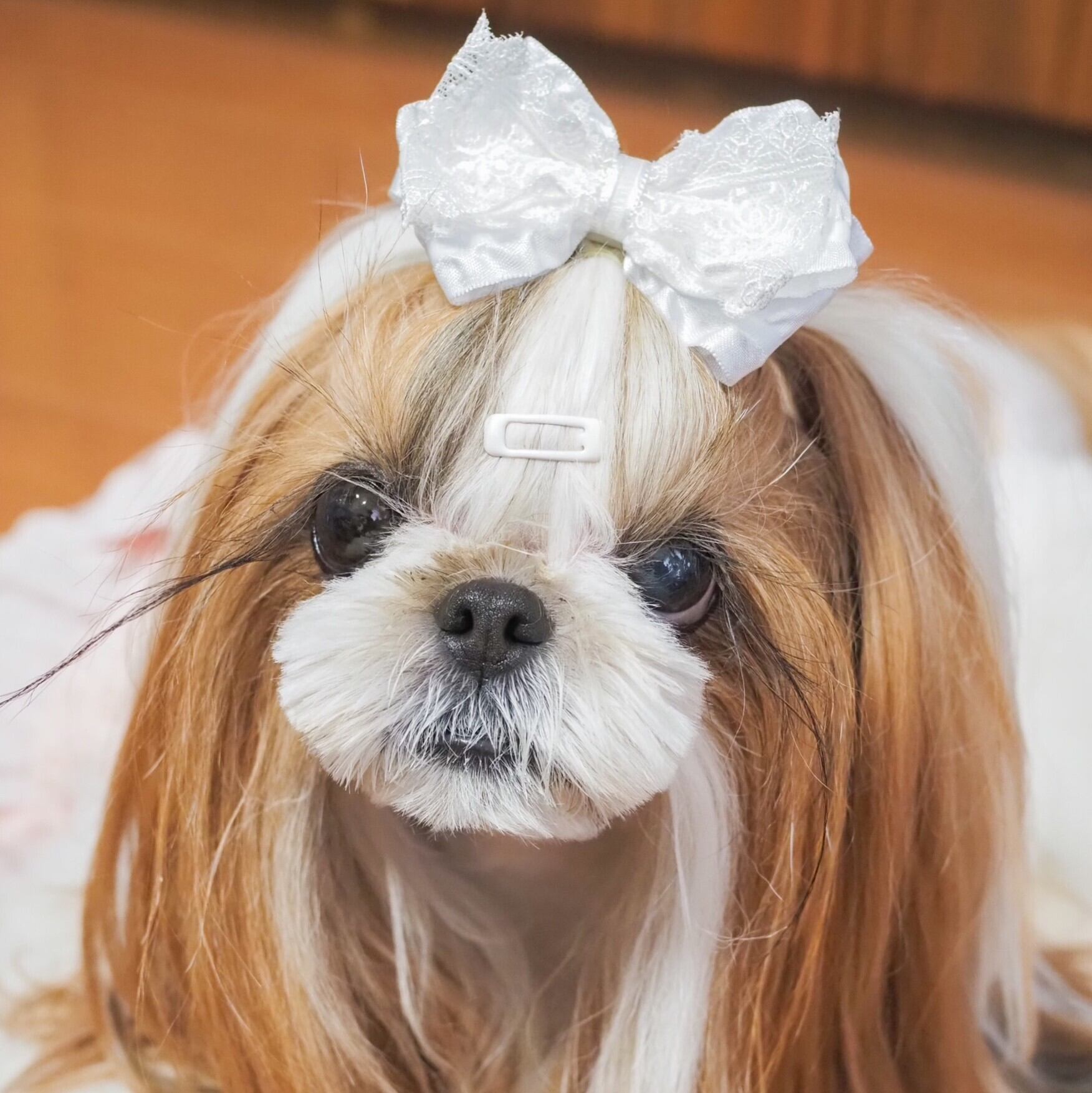 ☆「スタンド」→リボンを目立たせたい方、頭頂部の毛量が少なくリボンをつけるといつもリボンが寝てしまうワンちゃん。