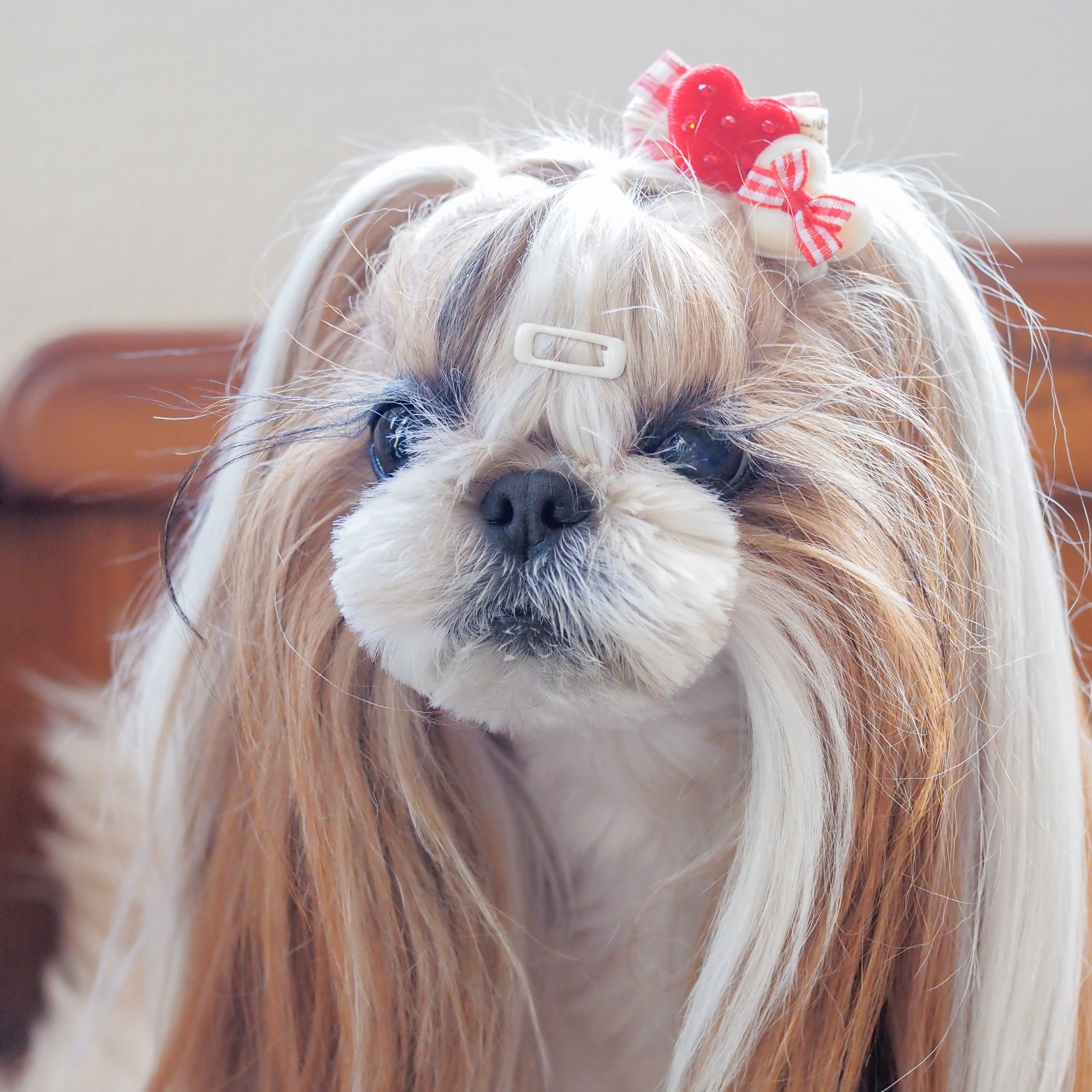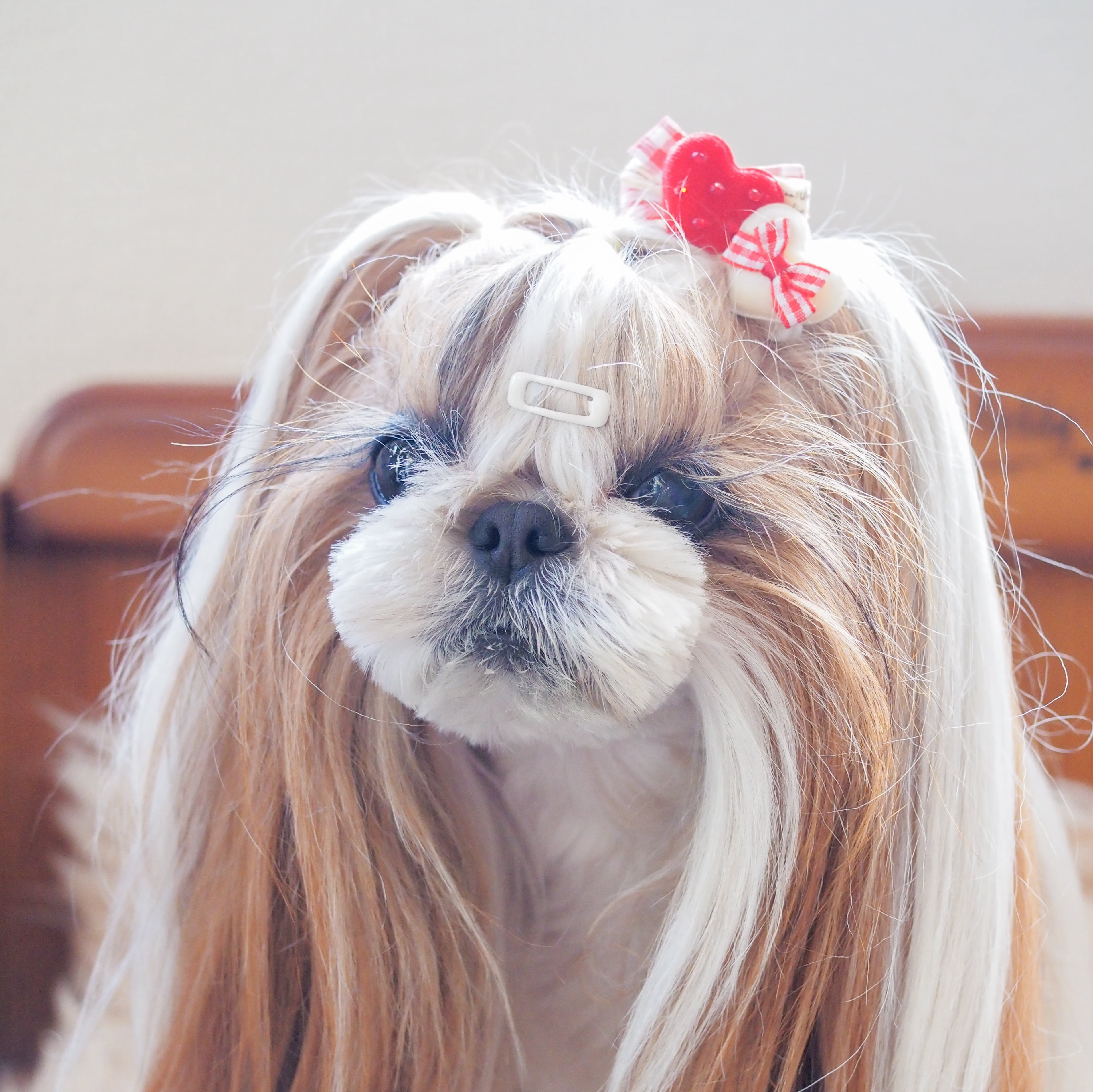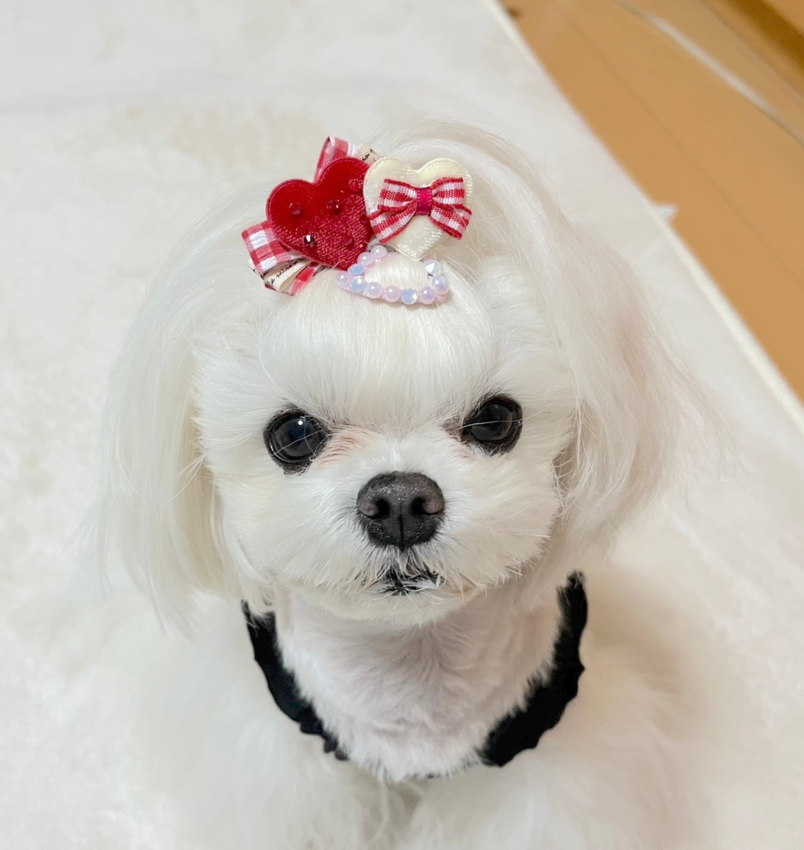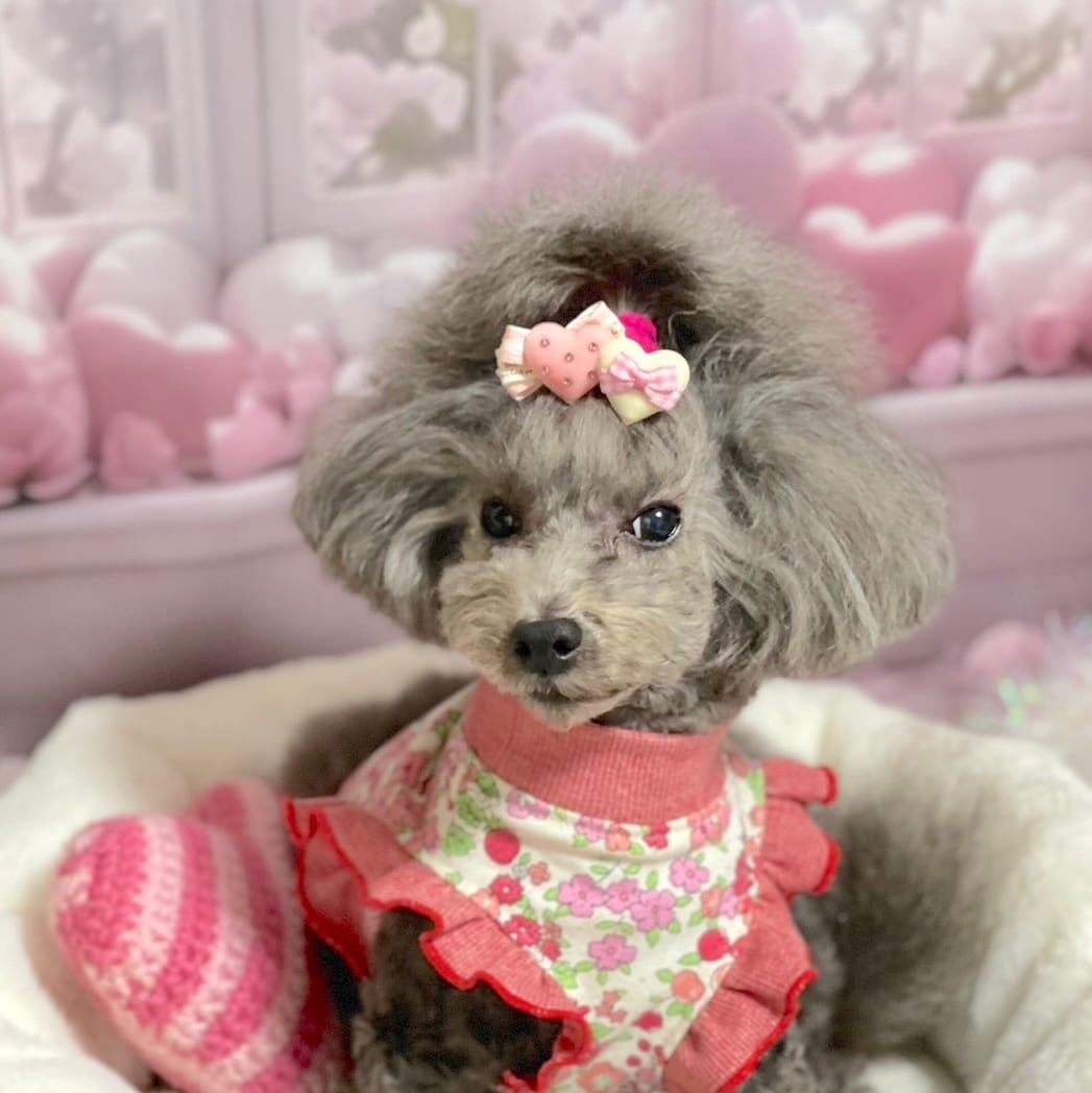 ☆「スタンド」→リボンを目立たせたい方、頭頂部の毛量が少なくリボンをつけるといつもリボンが寝てしまうワンちゃん。