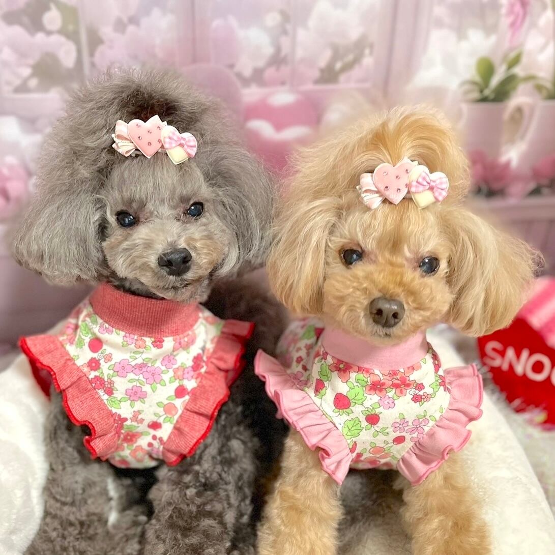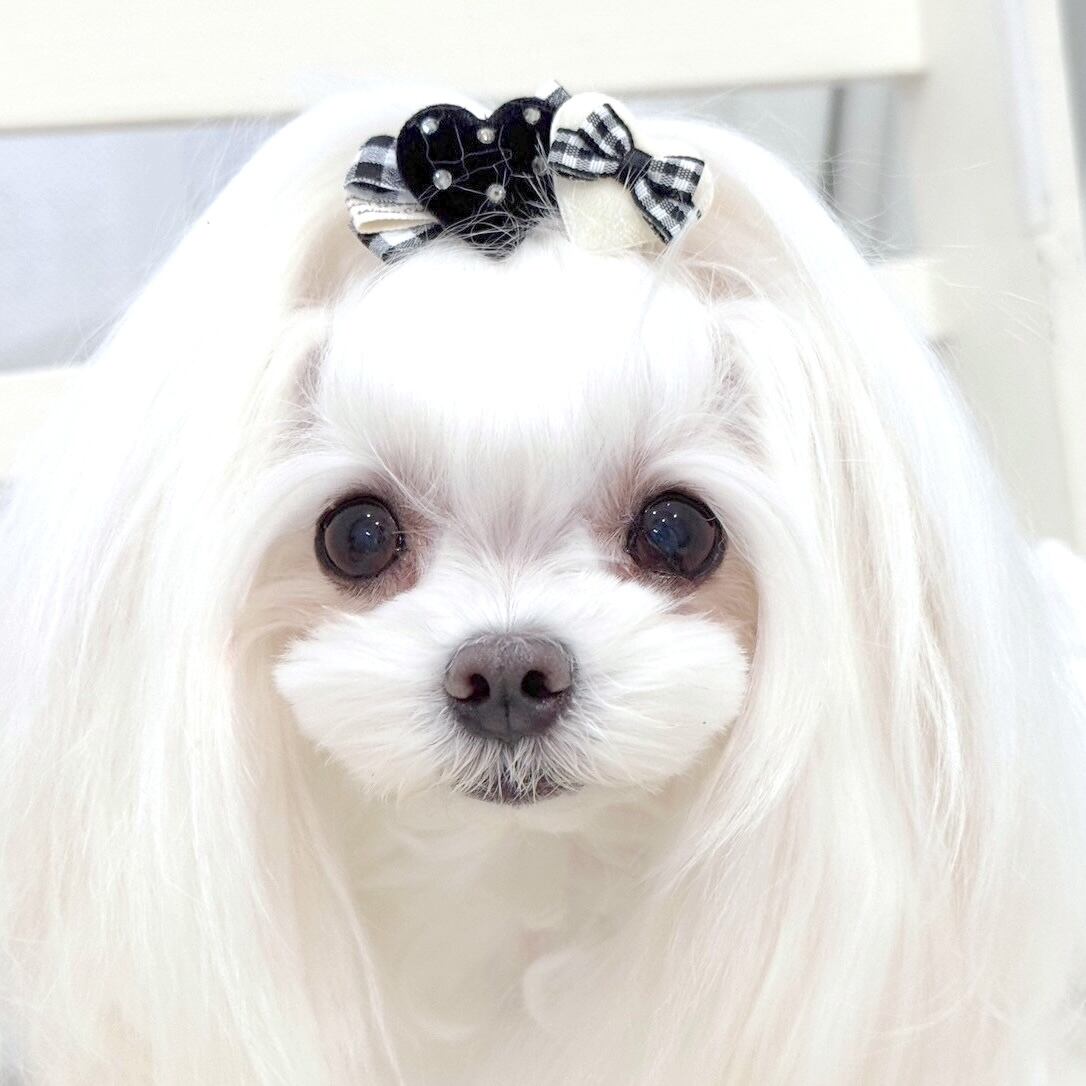 また、比較的毛量があるワンちゃんや、頭頂部だけでなく、毛の結び方を変えて耳の側、ツインテール等、色々付け方を変えて楽しみたい方、流れるデザインが好きな方。