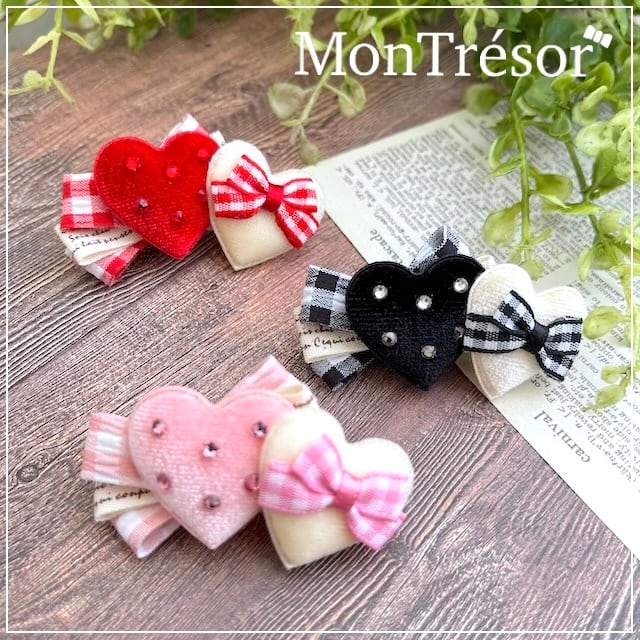 可愛いハートモチーフがついたバレッタリボン♡