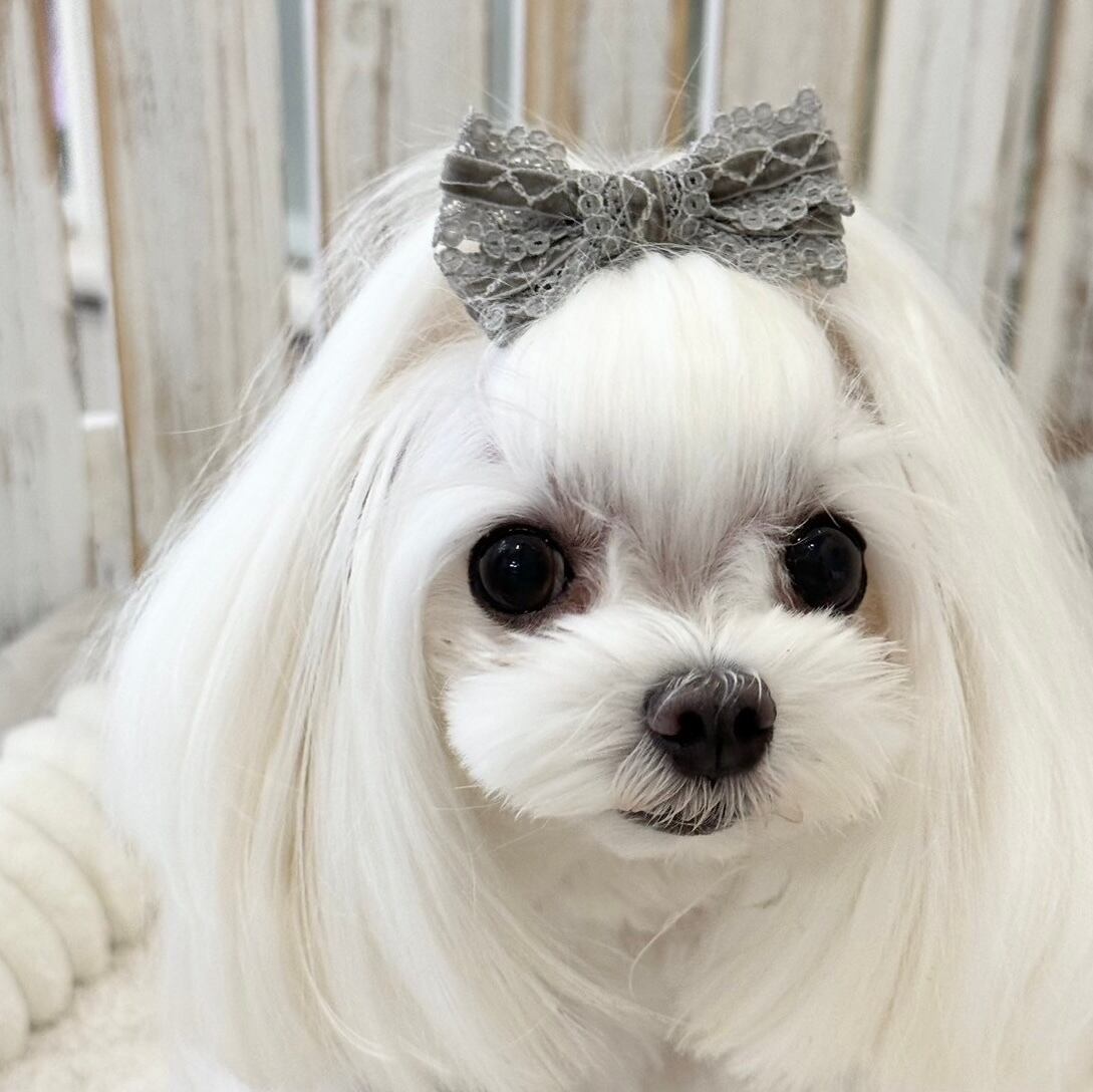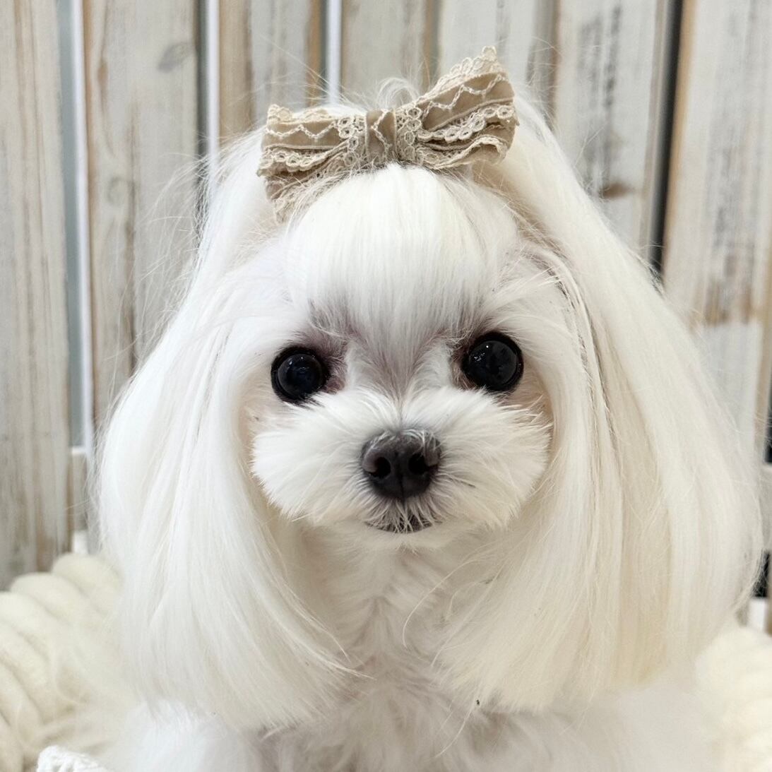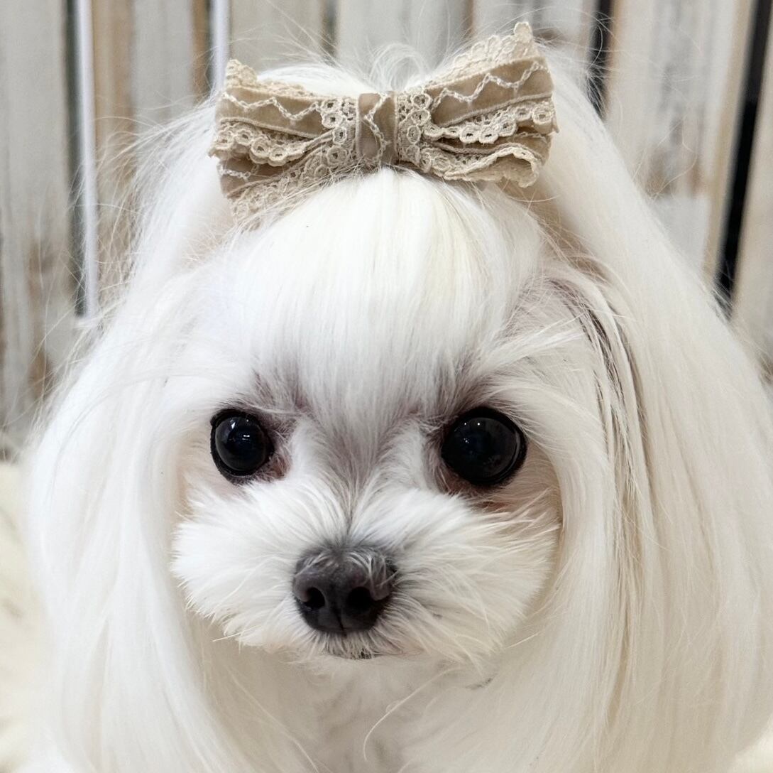 ☆「スタンド」→リボンを目立たせたい方、頭頂部の毛量が少なくリボンをつけるといつもリボンが寝てしまうワンちゃん。