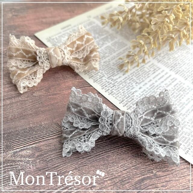 レースとベロア(ベルベット)のシックでエレガントなリボン♡