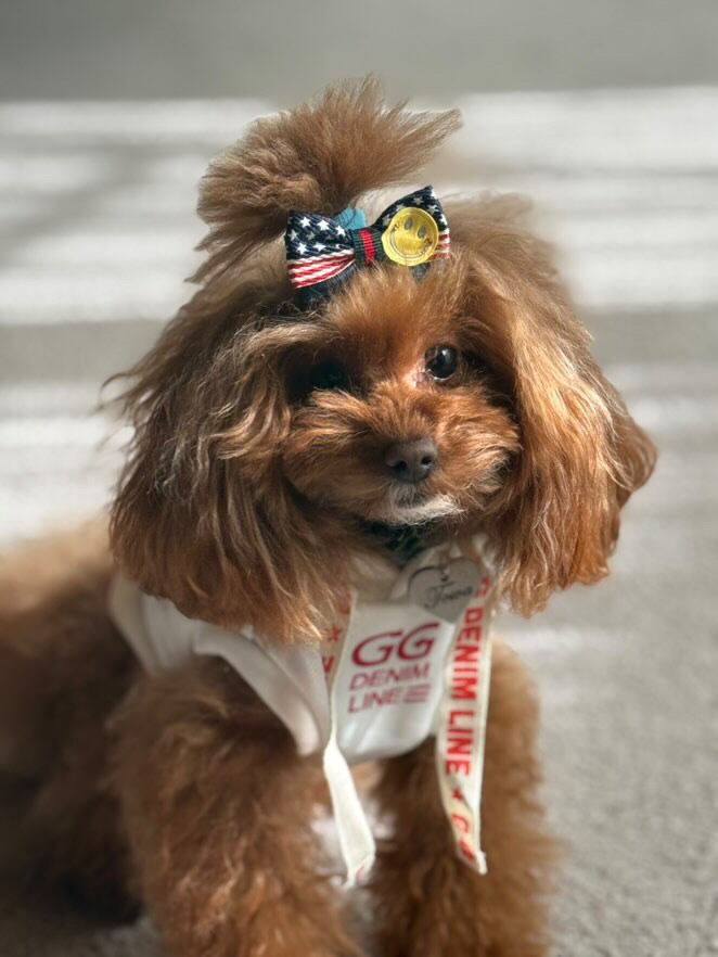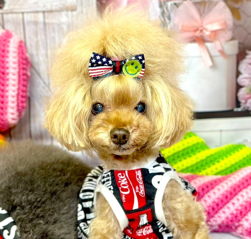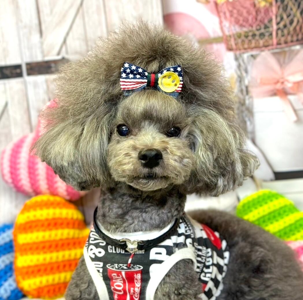 ☆「スタンド」→リボンを目立たせたい方、頭頂部の毛量が少なくリボンをつけるといつもリボンが寝てしまうワンちゃん。