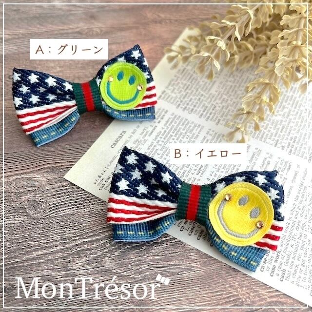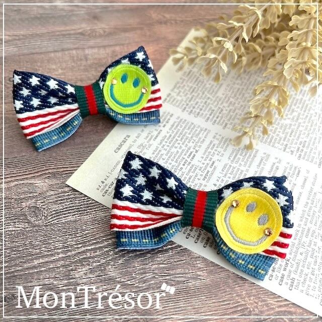 アメリカンフラッグ&Smiley(ニコちゃん)の組み合わせが可愛いリボン。
