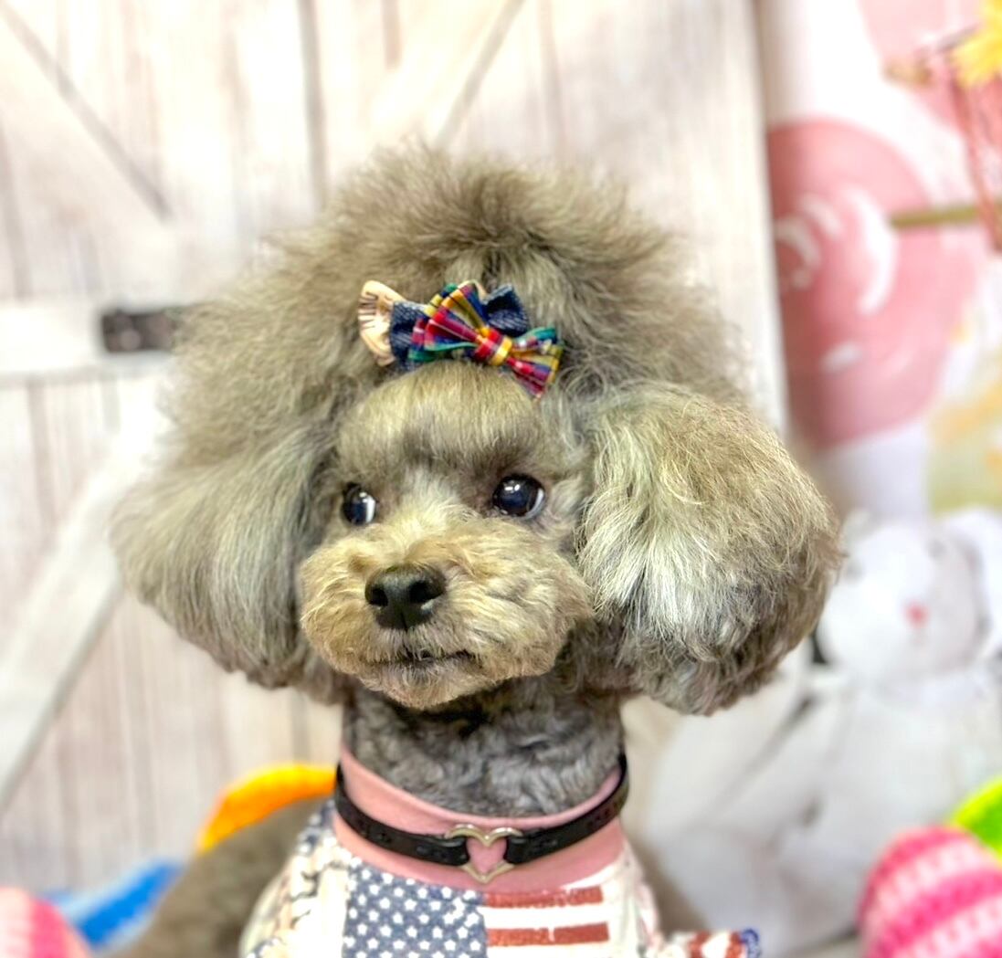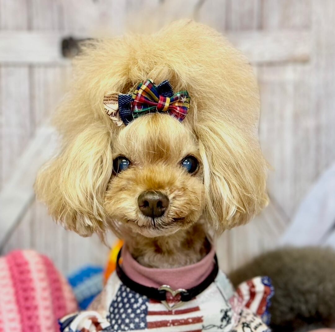 ☆「スタンド」→リボンを目立たせたい方、頭頂部の毛量が少なくリボンをつけるといつもリボンが寝てしまうワンちゃん。