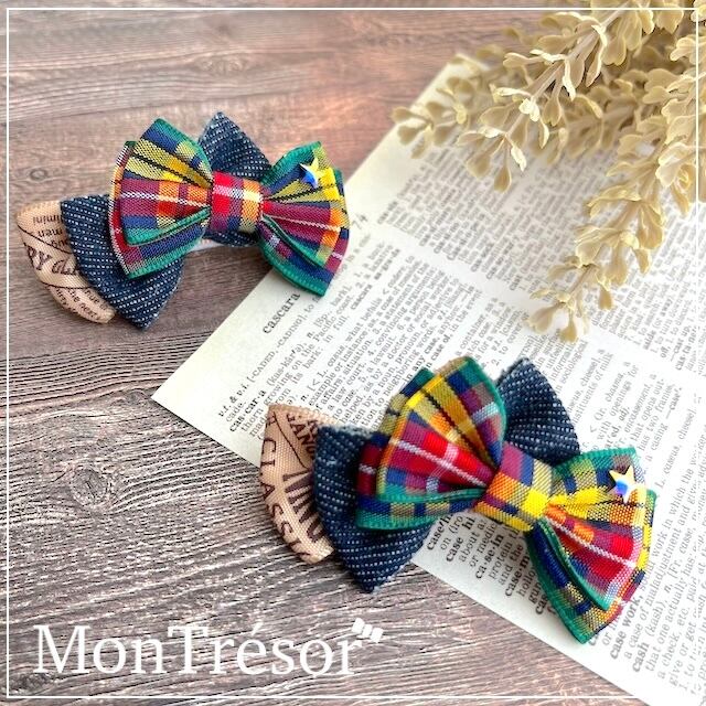 リボンと水平にバレッタを取り付けている「ノーマル」と、裏側に角度加工(約45度)がしてある「スタンド」とお選び頂けるように致しました。当ショップ独自の加工方法です。