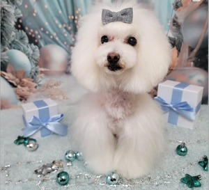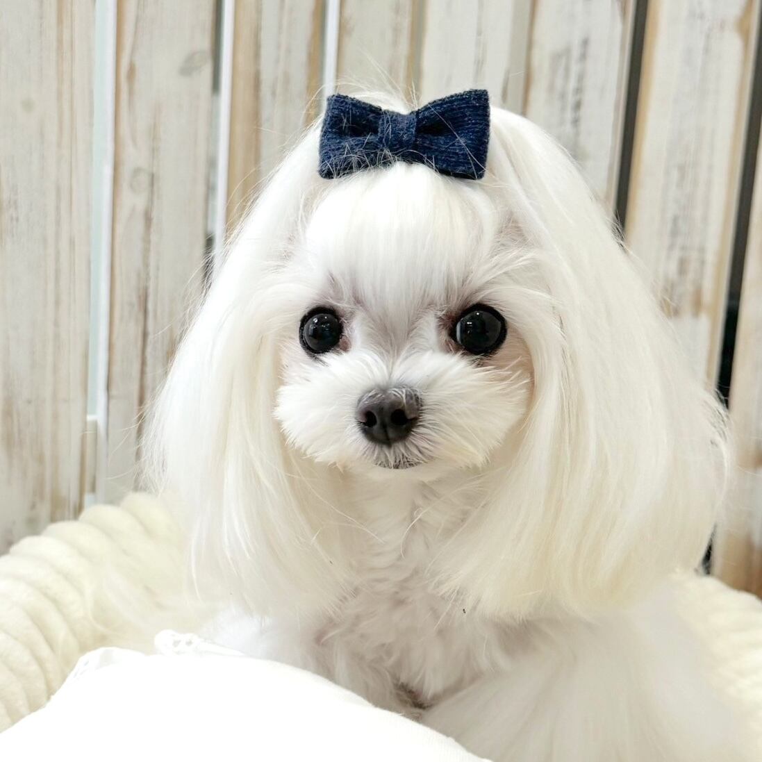 ☆「スタンド」→リボンを目立たせたい方、頭頂部の毛量が少なくリボンをつけるといつもリボンが寝てしまうワンちゃん。
