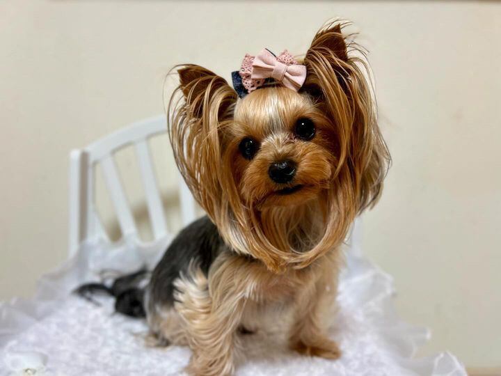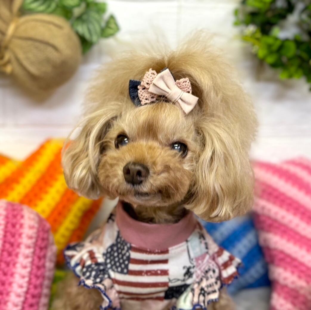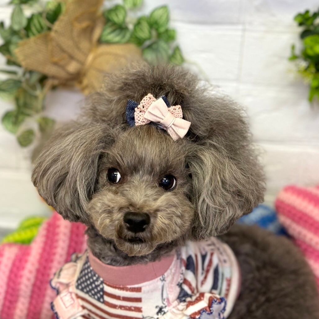 ☆「スタンド」→リボンを目立たせたい方、頭頂部の毛量が少なくリボンをつけるといつもリボンが寝てしまうワンちゃん。