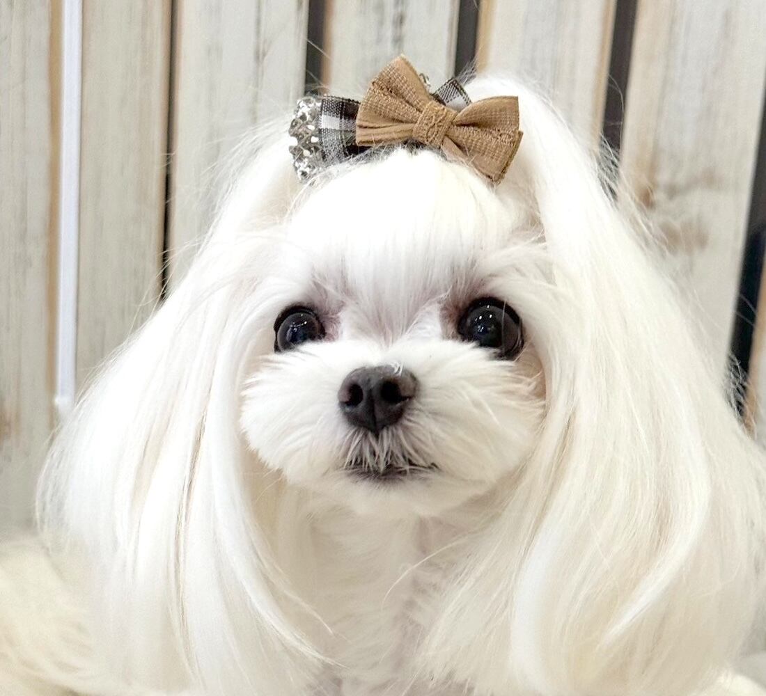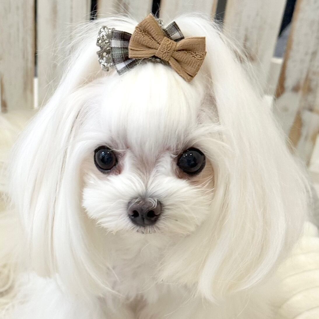 ☆「スタンド」→リボンを目立たせたい方、頭頂部の毛量が少なくリボンをつけるといつもリボンが寝てしまうワンちゃん。