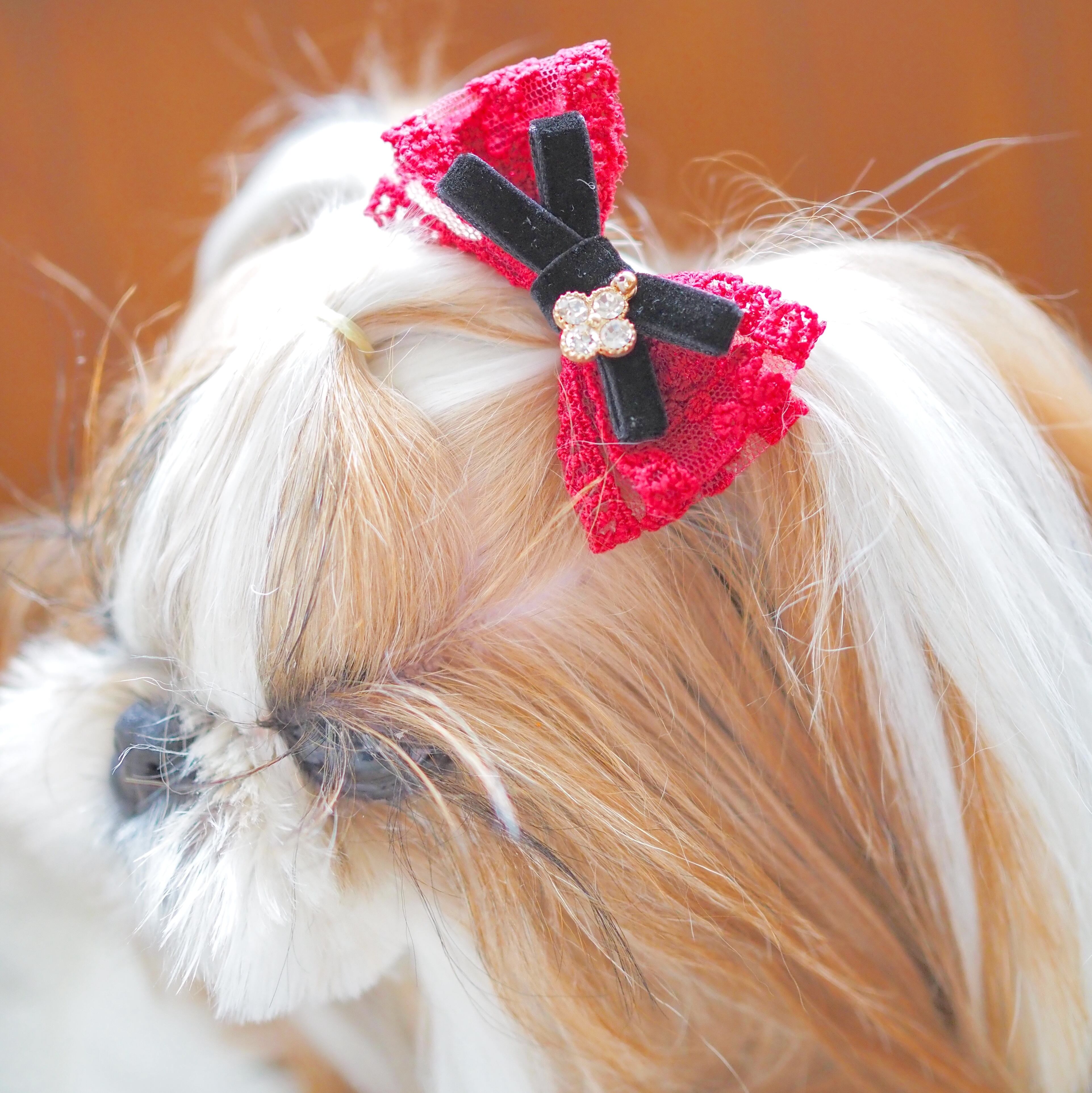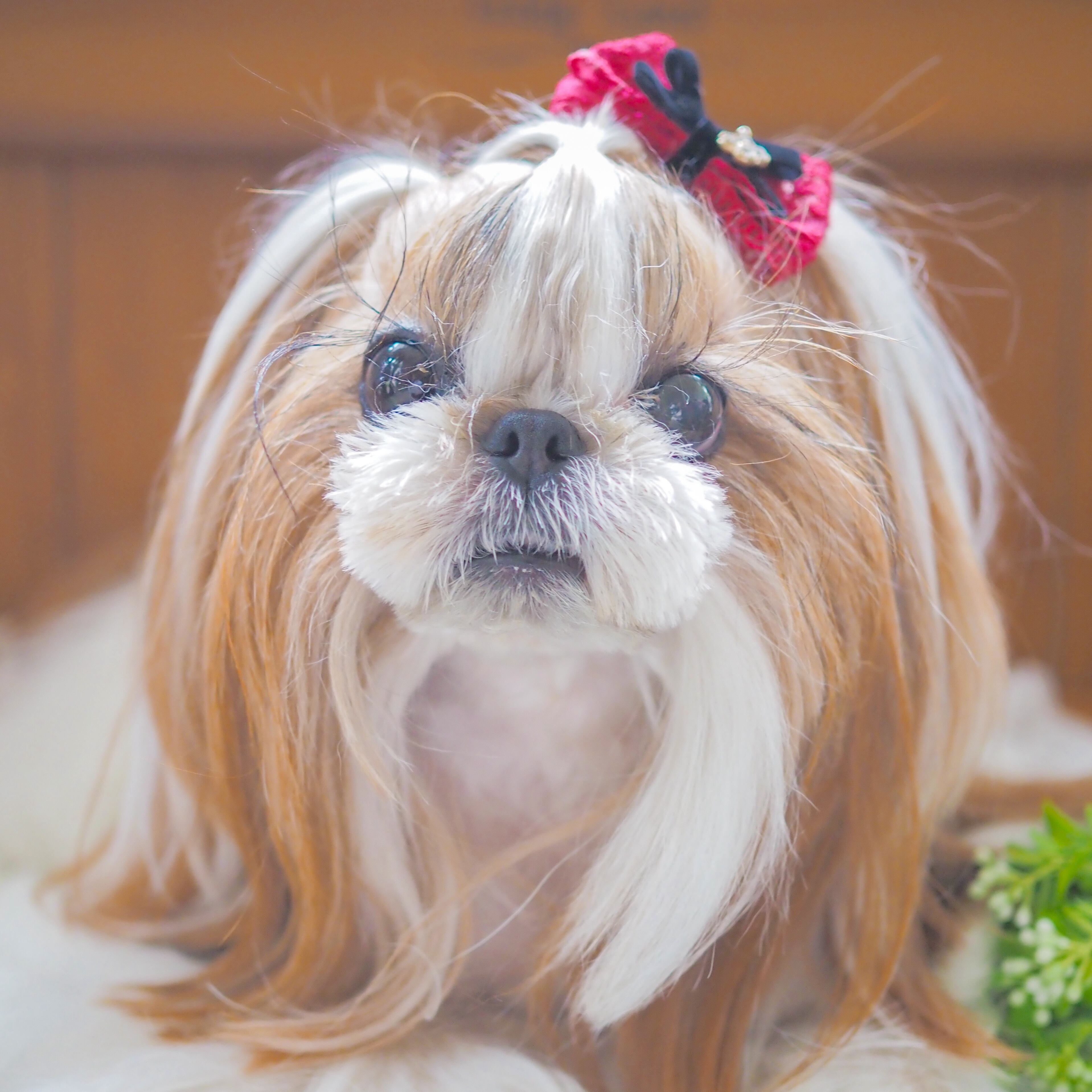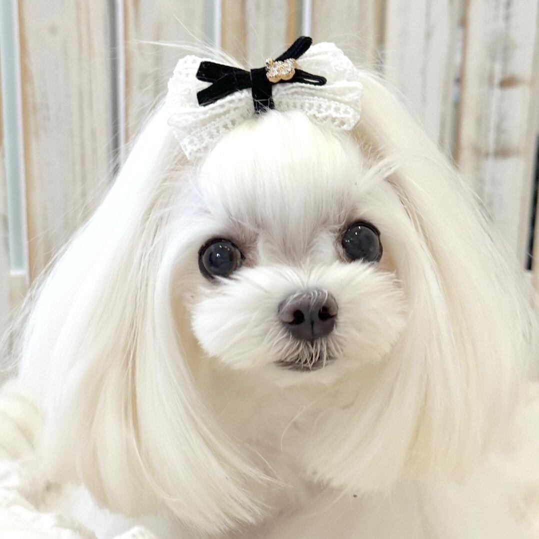 ☆「スタンド」→リボンを目立たせたい方、頭頂部の毛量が少なくリボンをつけるといつもリボンが寝てしまうワンちゃん。
