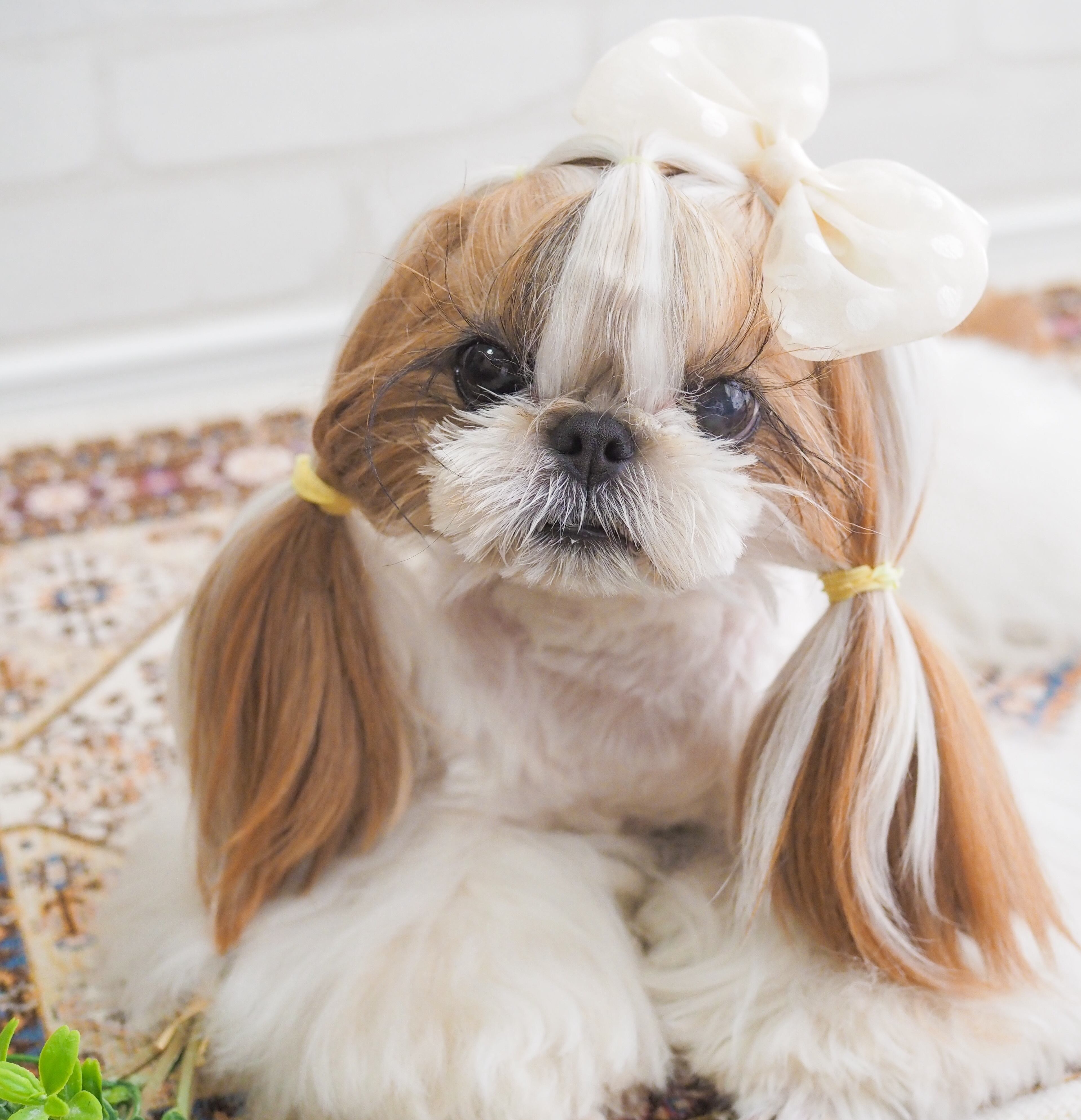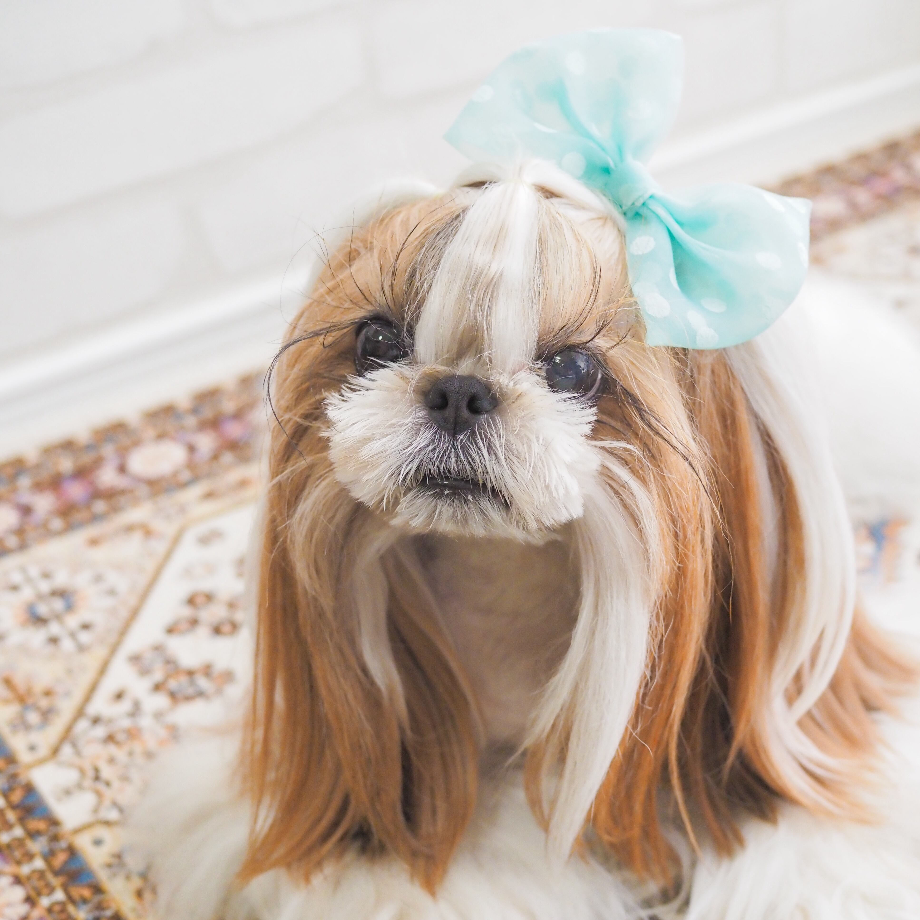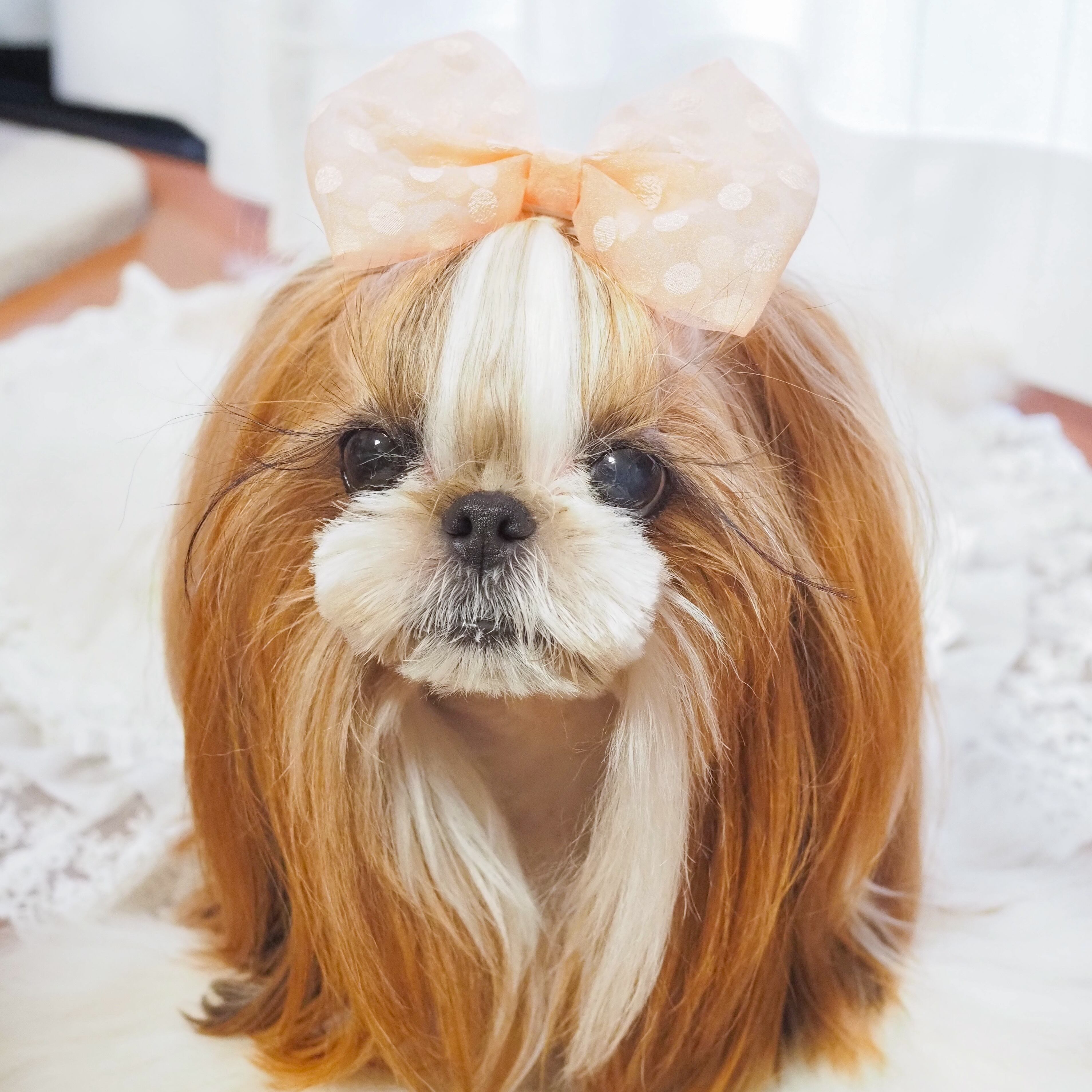☆「スタンド」→リボンを目立たせたい方、頭頂部の毛量が少なくリボンをつけるといつもリボンが寝てしまうワンちゃん。