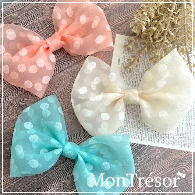ふんわり膨らんだ形が可愛いシフォンドットリボン♡