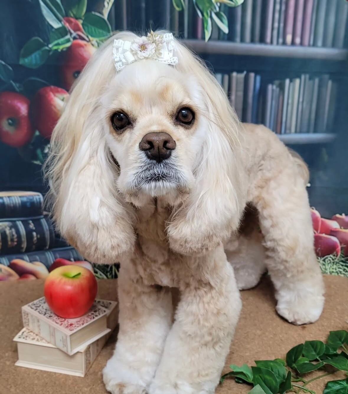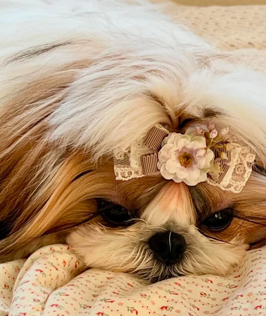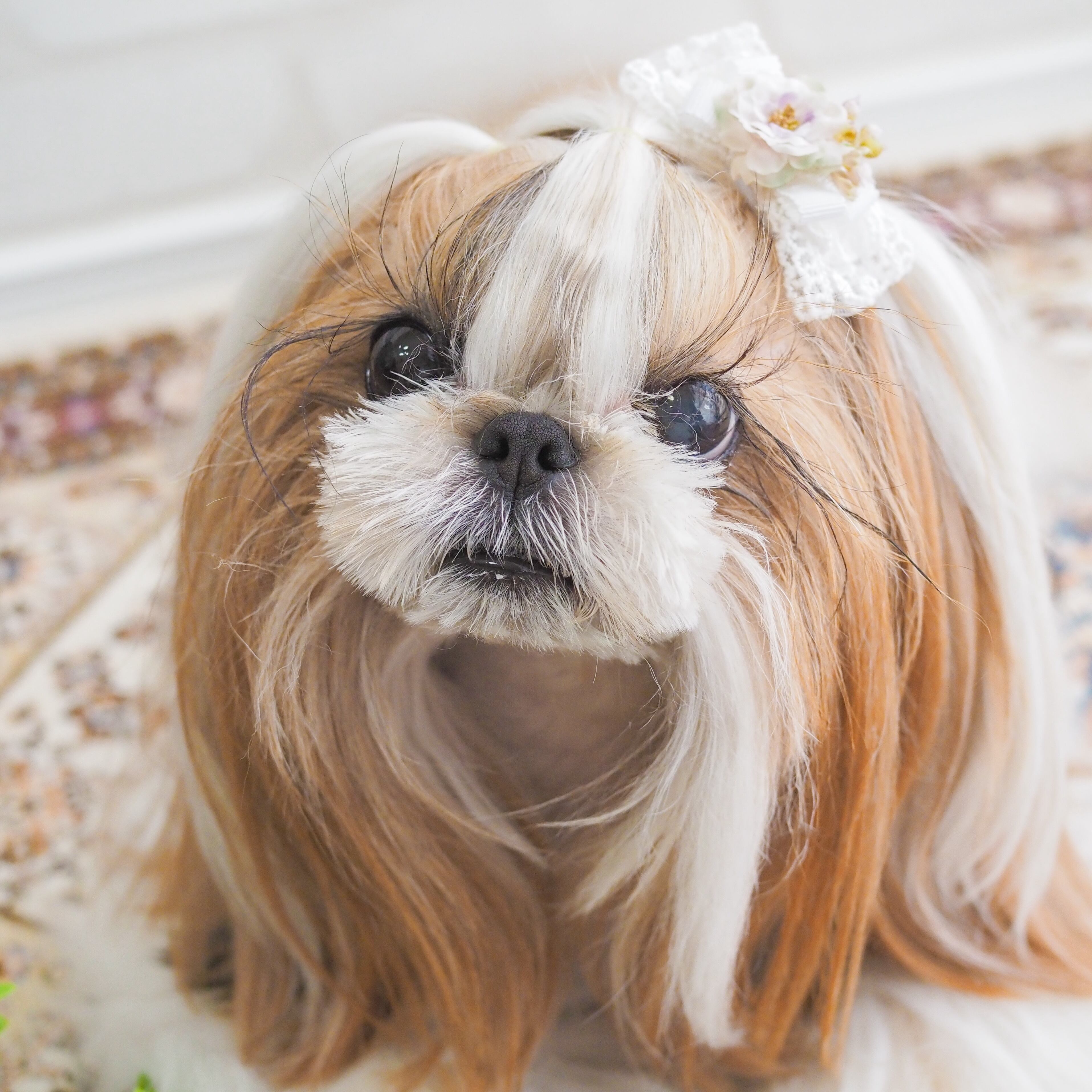 ☆「スタンド」→リボンを目立たせたい方、頭頂部の毛量が少なくリボンをつけるといつもリボンが寝てしまうワンちゃん。