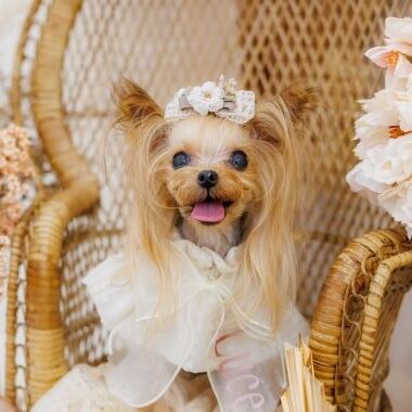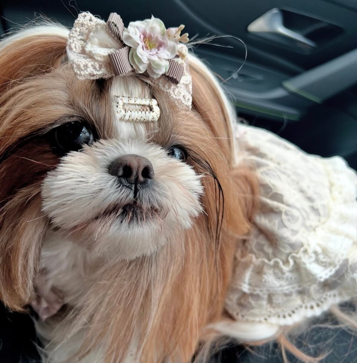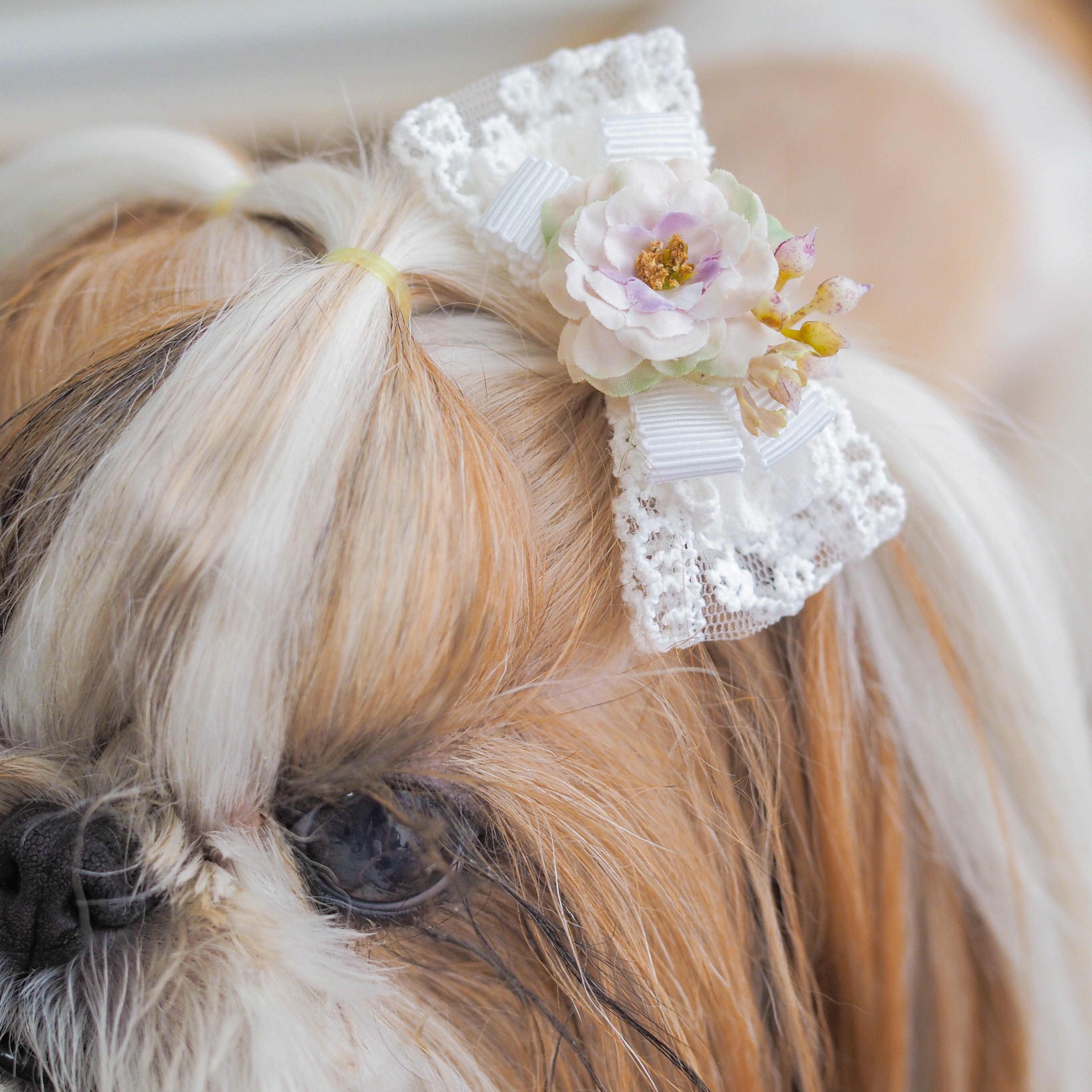 また、比較的毛量があるワンちゃんや、頭頂部だけでなく、毛の結び方を変えて耳の側、ツインテール等、色々付け方を変えて楽しみたい方、流れるデザインが好きな方。