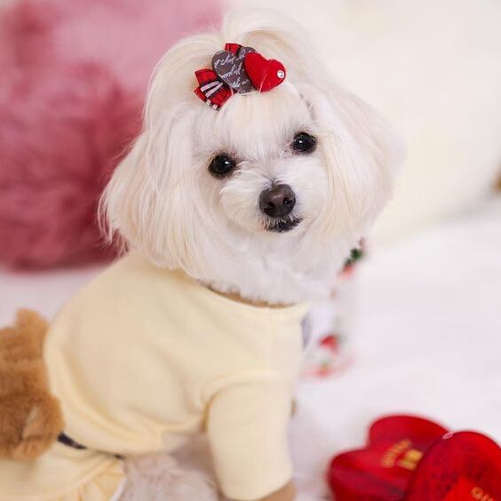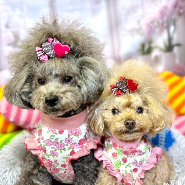 また、比較的毛量があるワンちゃんや、頭頂部だけでなく、毛の結び方を変えて耳の側、ツインテール等、色々付け方を変えて楽しみたい方、流れるデザインが好きな方。